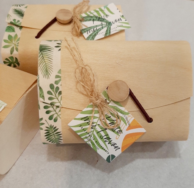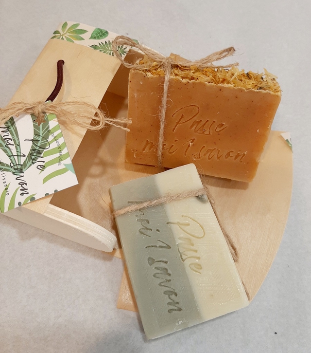 2 savons de 100g dans ce coffret en bois. Un chouette cadeau dans une jolie boite, réutilisable bien sûr!